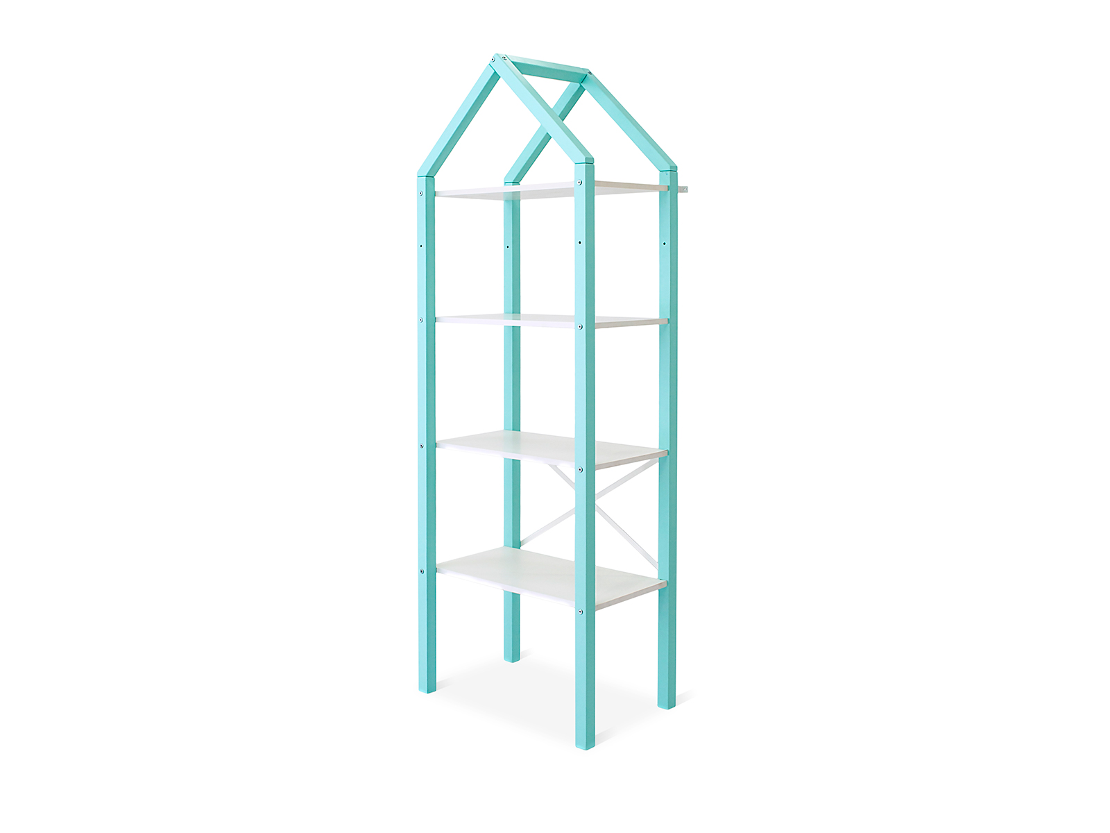 Короб для хранения приобретается отдельно!Стеллаж стоит на 4ех ножках. Для устойчивости конструкцию детского стеллажа можно прикрепить к стене с помощью специального уголка, который идет в комплекте. Стеллаж сконструирован так, что его можно использовать в двух вариантах – с четырьмя полками или с вешалом и одной полкой. Все необходимое для двух вариантов сборки стеллажа идет в комплекте. Крышу домика при желании можно снять.