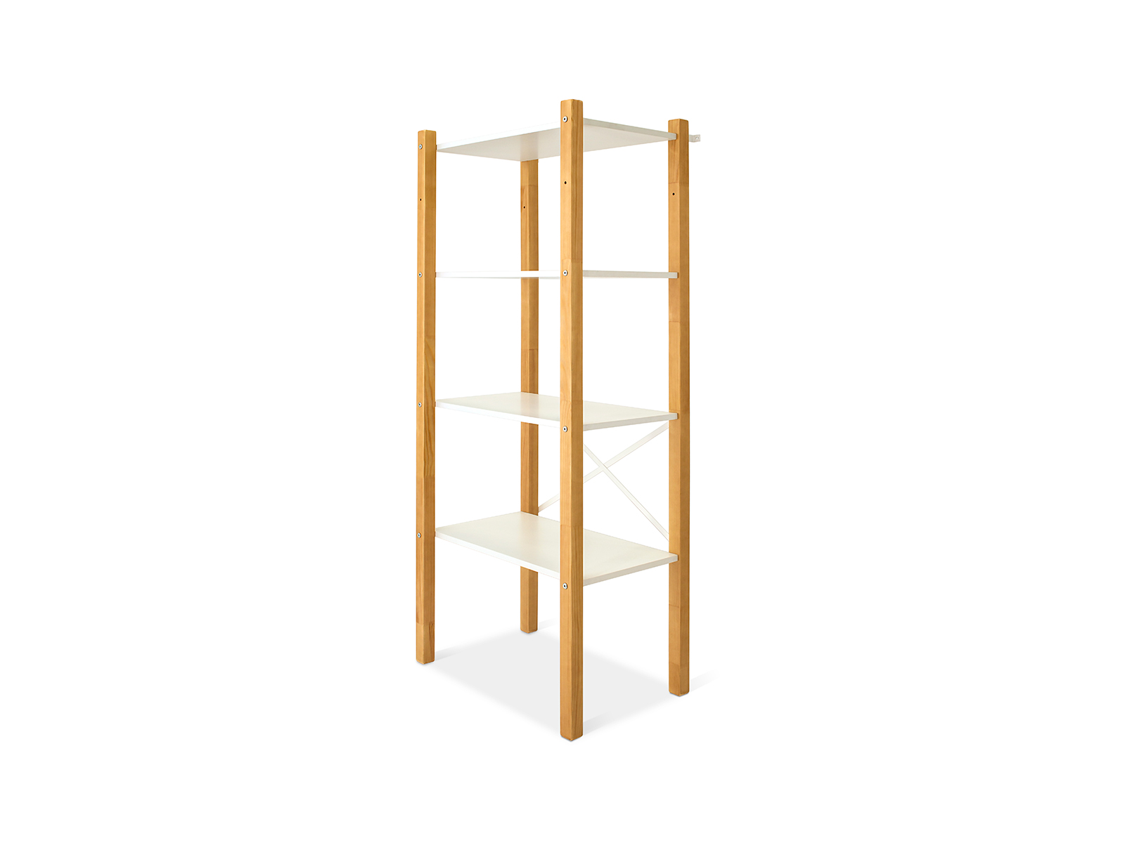 Стеллаж стоит на 4ех ножках. Для устойчивости конструкцию детского стеллажа можно прикрепить к стене с помощью специального уголка, который идет в комплекте. Стеллаж сконструирован так, что его можно использовать в двух вариантах – с четырьмя полками или с вешалом и одной полкой. Все необходимое для двух вариантов сборки стеллажа идет в комплекте.