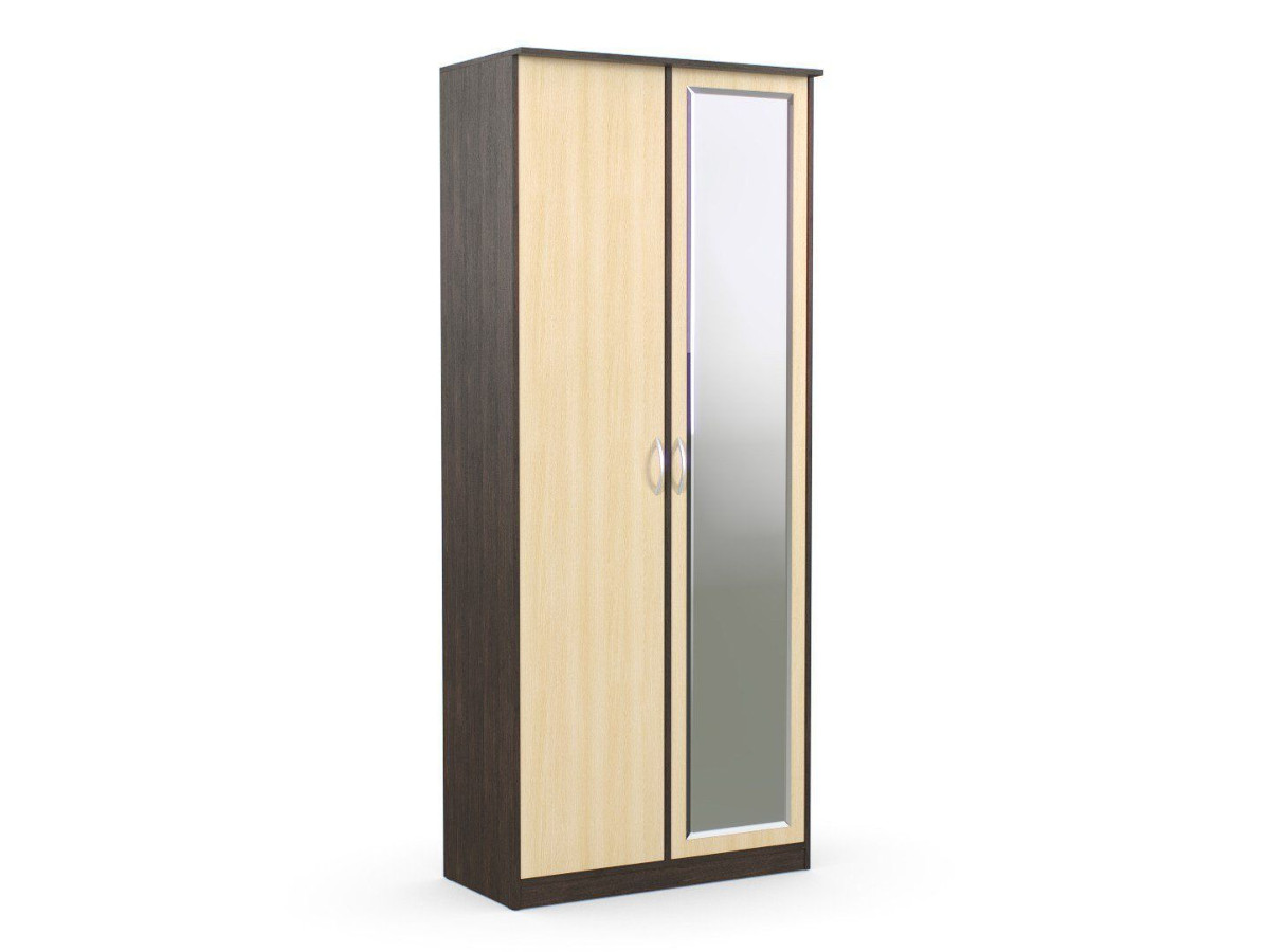 - Шкаф 2-х створчатый Дуэт Люкс с зеркалом Венге/Млечный Дуб