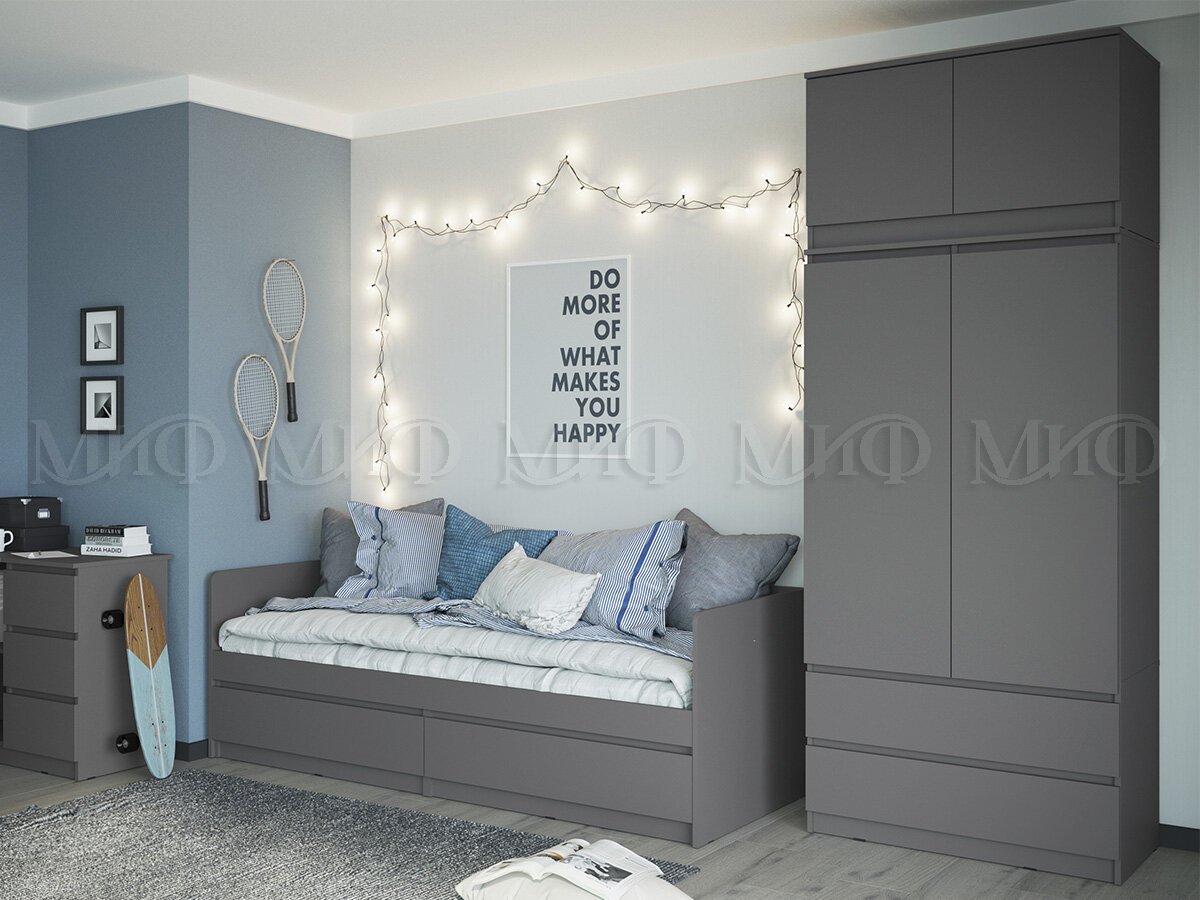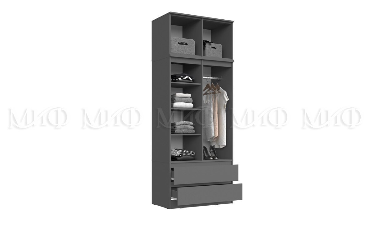 - Шкаф 2-х створчатый комбинированный с антресолью 900 Челси графит
