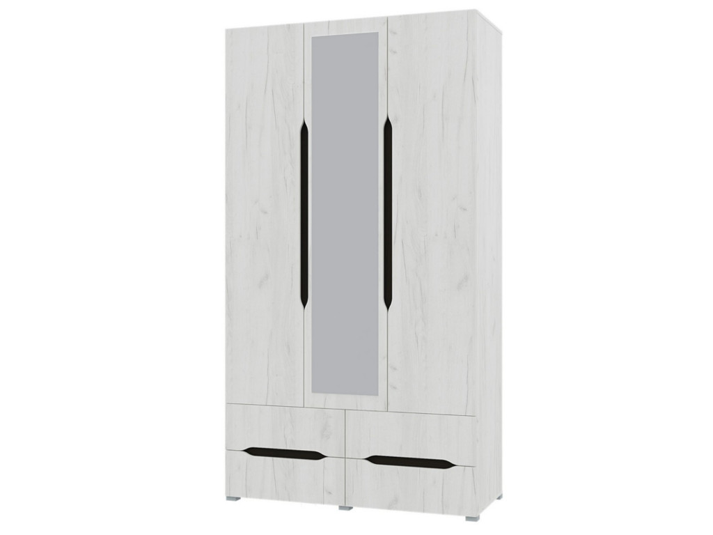 Шкаф 3х створчатый 4 ящика Вега с зеркалом Крафт белый