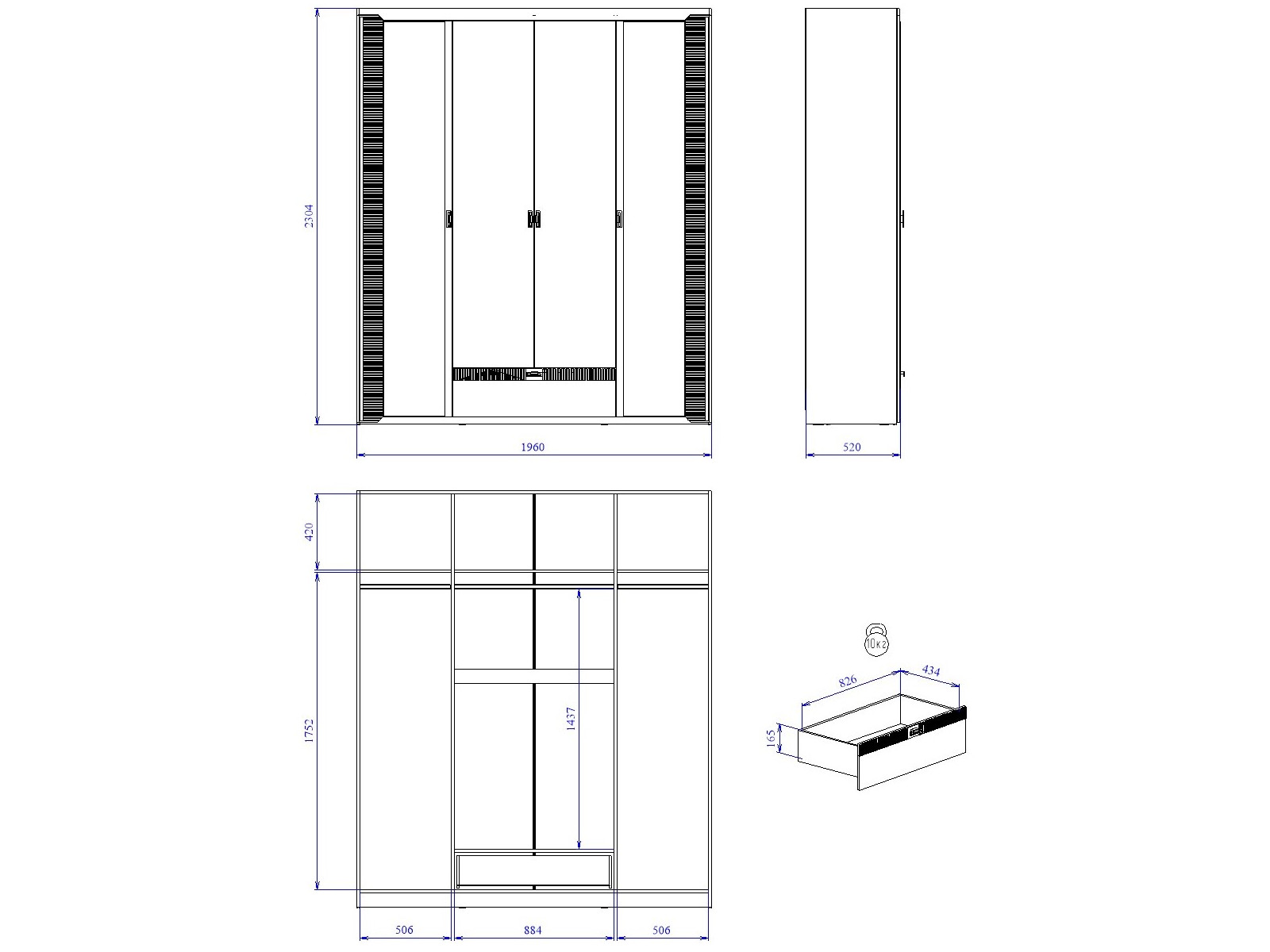 Шкаф 4-дверный NEW Сиде Белый