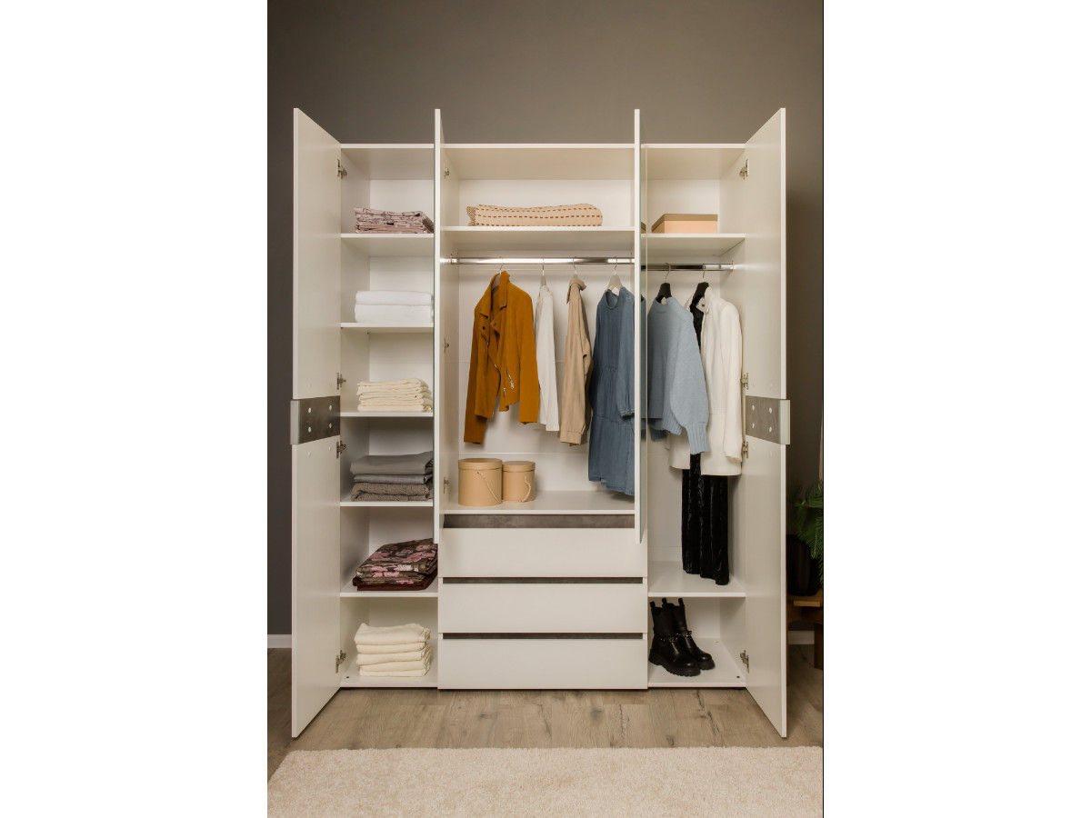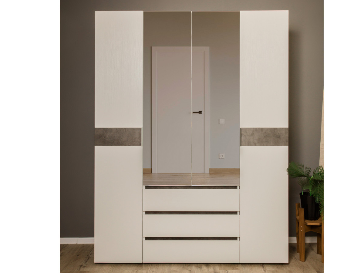 - Шкаф четырехдверный 1600 Лотос с зеркалом Бетон серый