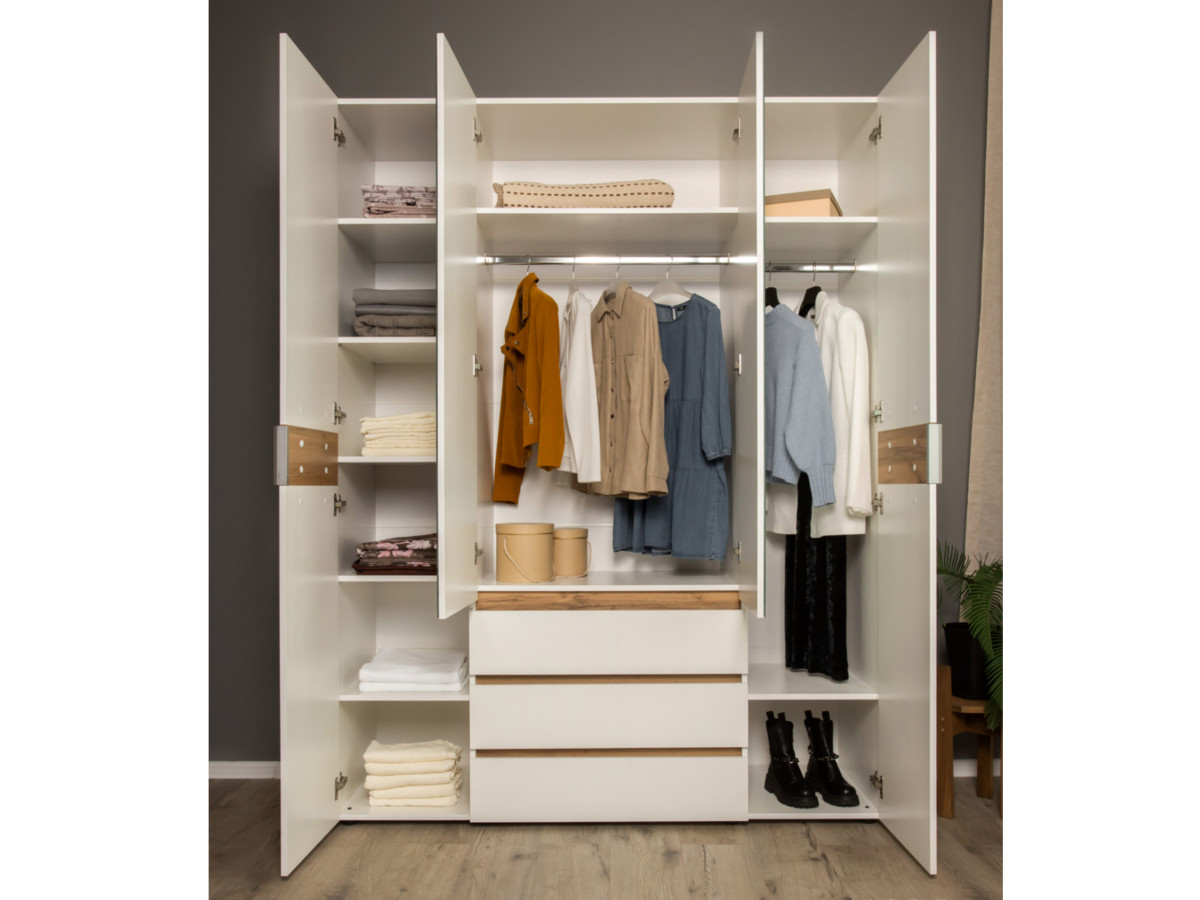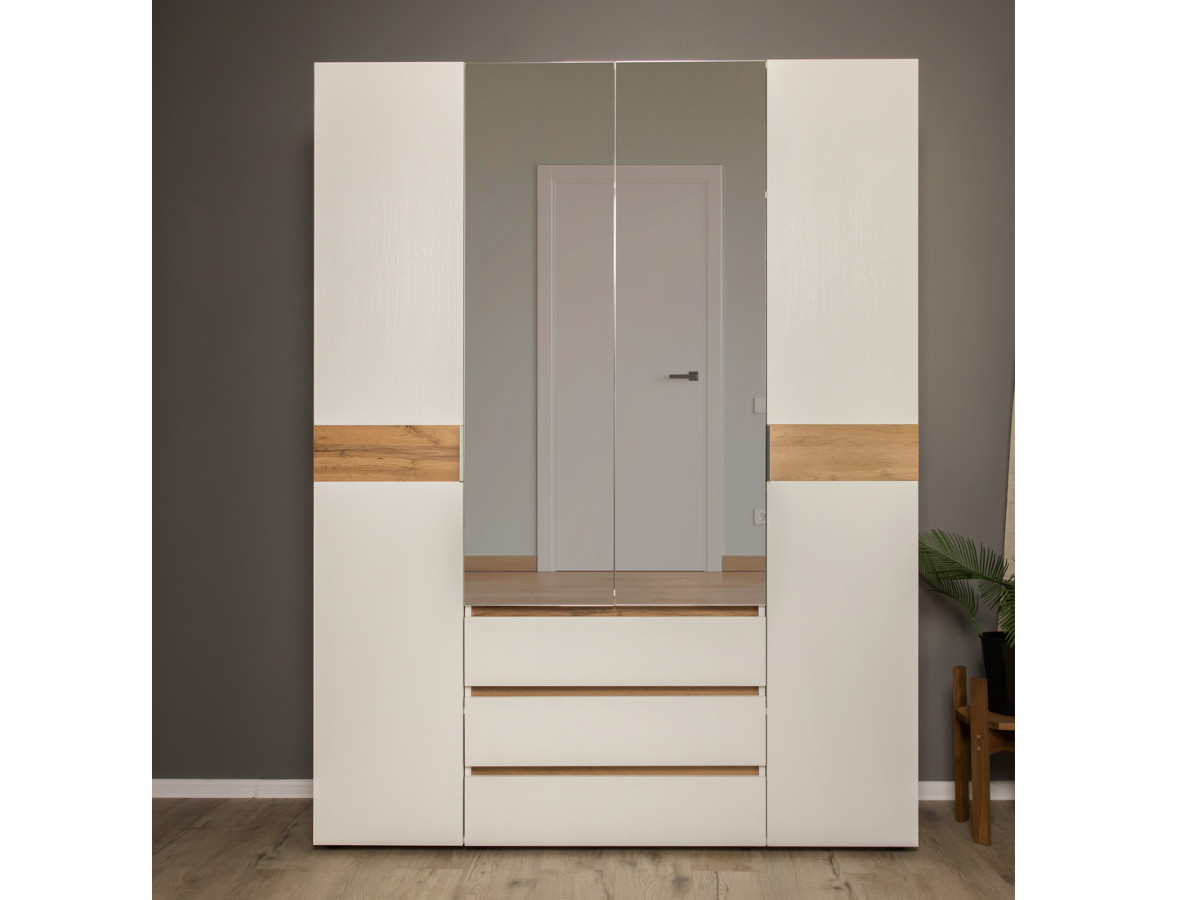 - Шкаф четырехдверный 1600 Лотос с зеркалом Дуб крафт