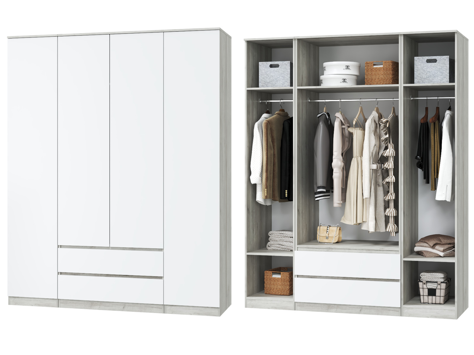 Шкаф для одежды четырехдверный Лори дуб серый, белый