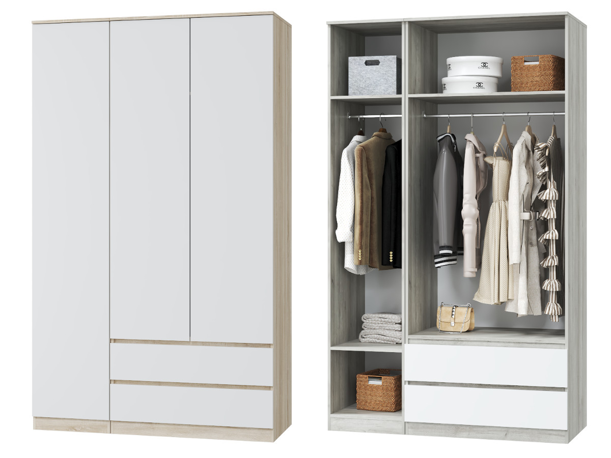 - Шкаф для одежды трехдверный Лори дуб сонома, белый