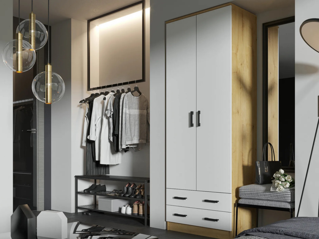 Шкаф Дуэт дуб вотан/белый гладкий