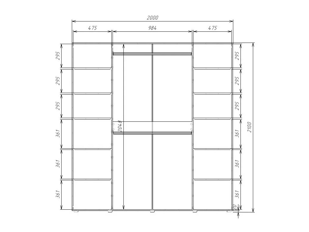 Шкаф Гранд ГШК/2-21-20-2222 (двери тип 2) с двумя зеркалами