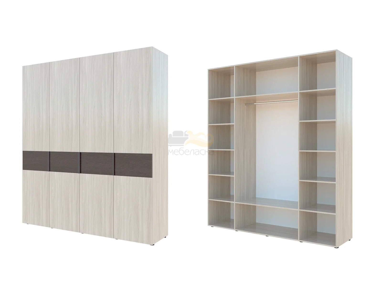 - Шкаф комбинированный с полками по краям и 1 штангой в центре Гранд ГШК/1-23-20-3333