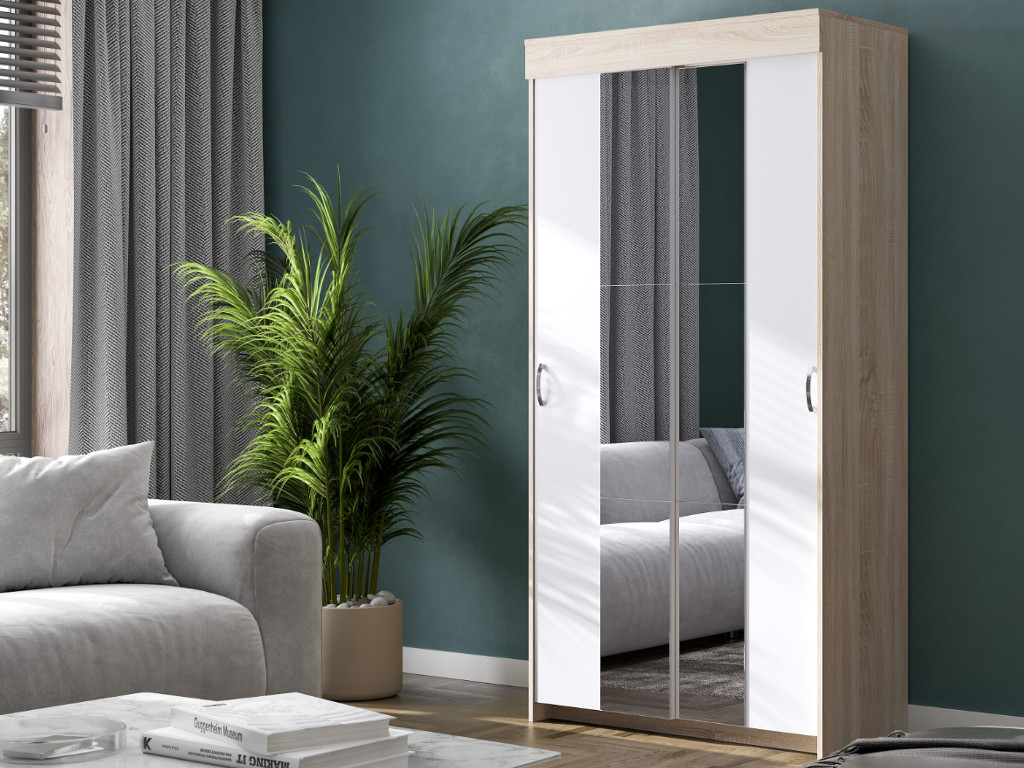Шкаф-купе Бассо двухдверный дуб сонома-белый 2 зеркальные вставки
