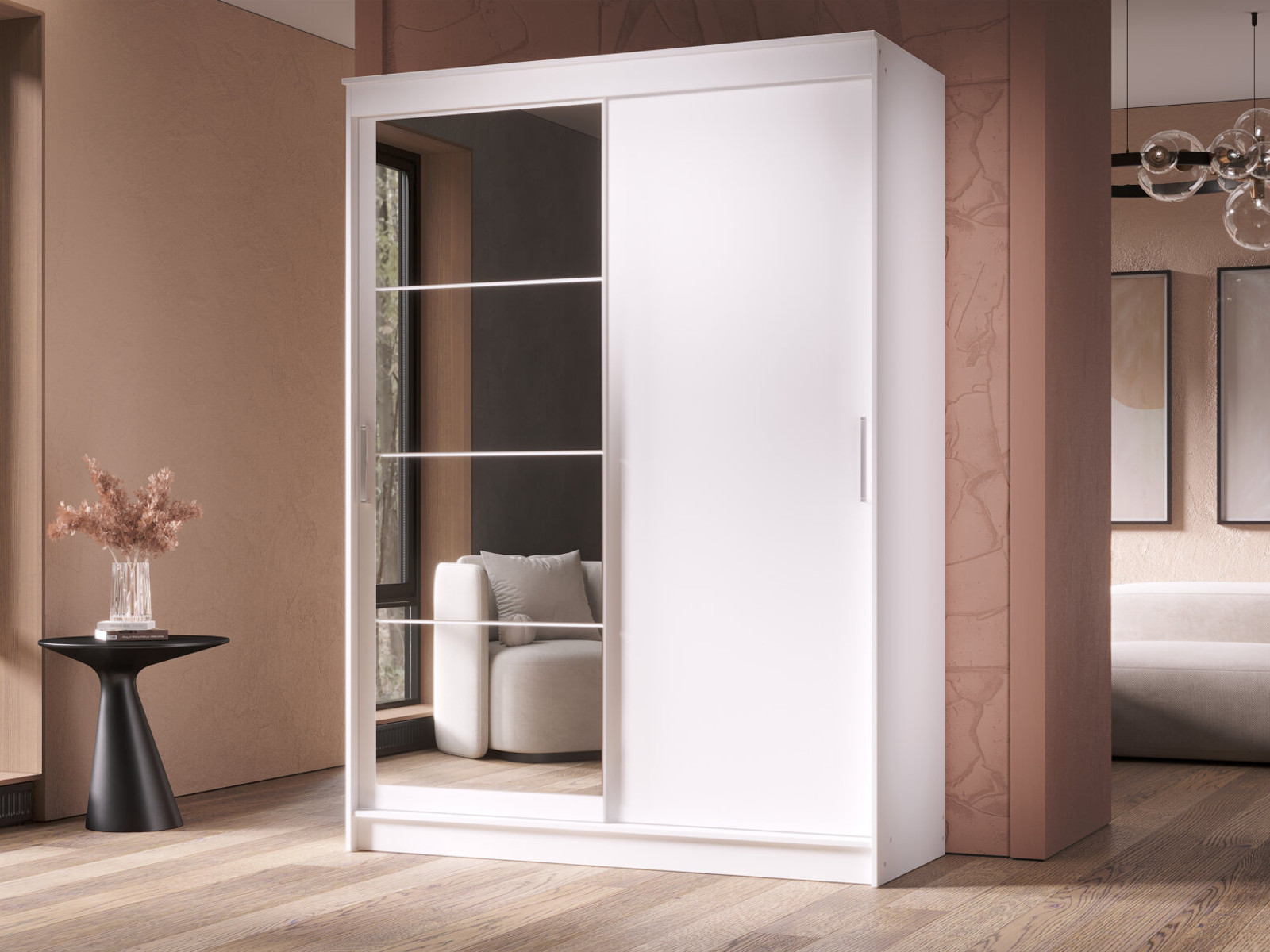 - Шкаф-купе Гранд-1 1600 Белый гладкий-двери Зеркало-ЛДСП