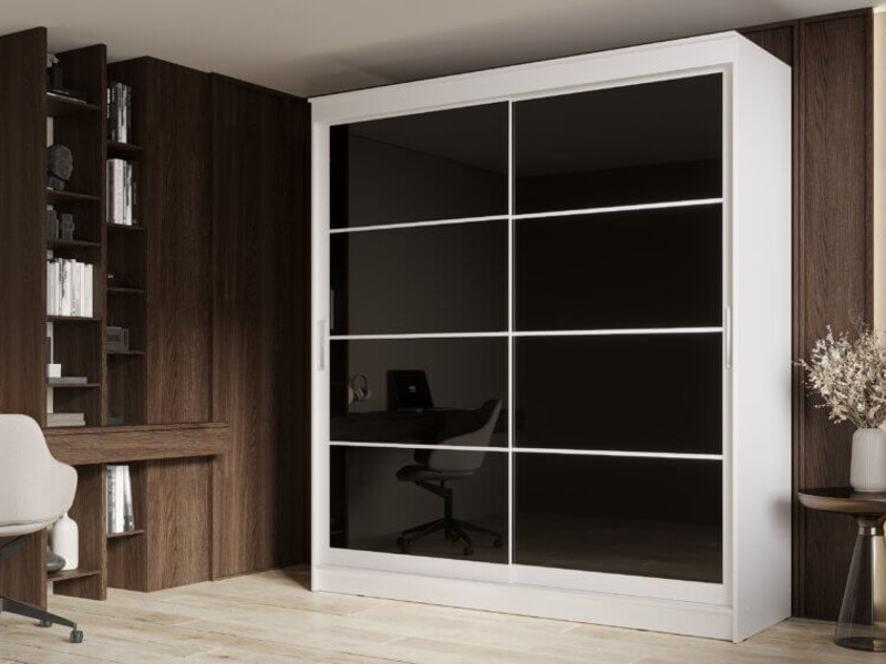 - Шкаф-купе Гранд-1 2000 Белый гладкий-двери Лакобель черный