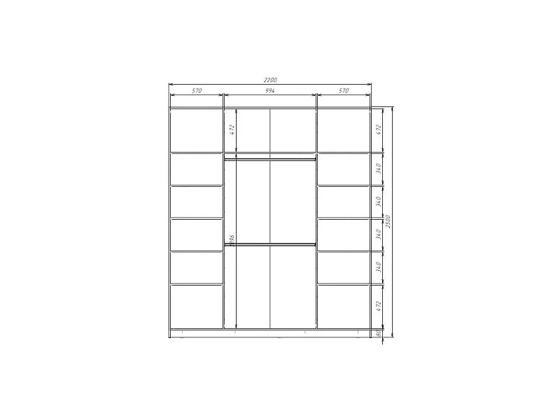 - Шкаф-купе Max МШ-25-6-22/2-22 пленка Oracal темно-серая