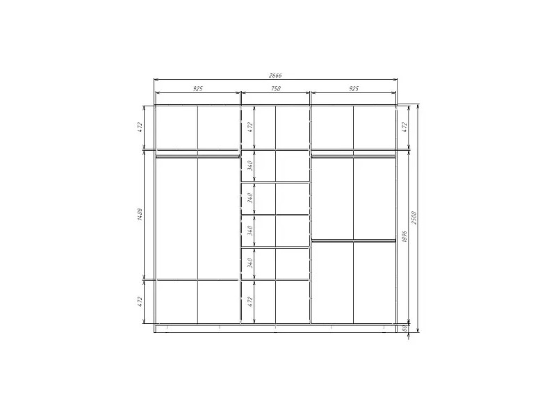 - 3 двери верхняя и нижняя вставка – ДСП 10 мм, центральная – стекло с пленкой Oracal.