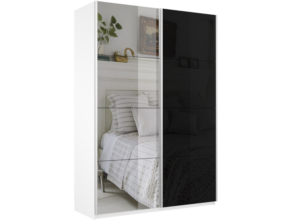 - Шкаф-купе Прайм 2-х дверный 1200 Зеркало/Стекло Черное Белый Снег