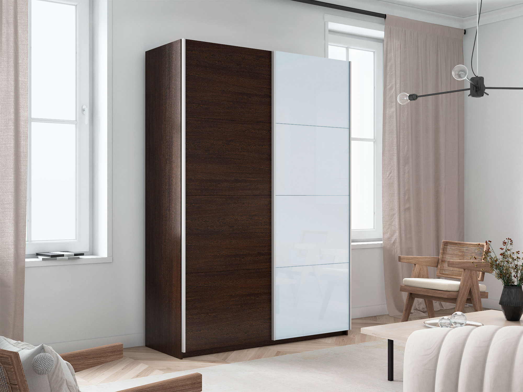 - Шкаф-купе Прайм 2-х дверный 1400 ДСП/Стекло Белое Венге