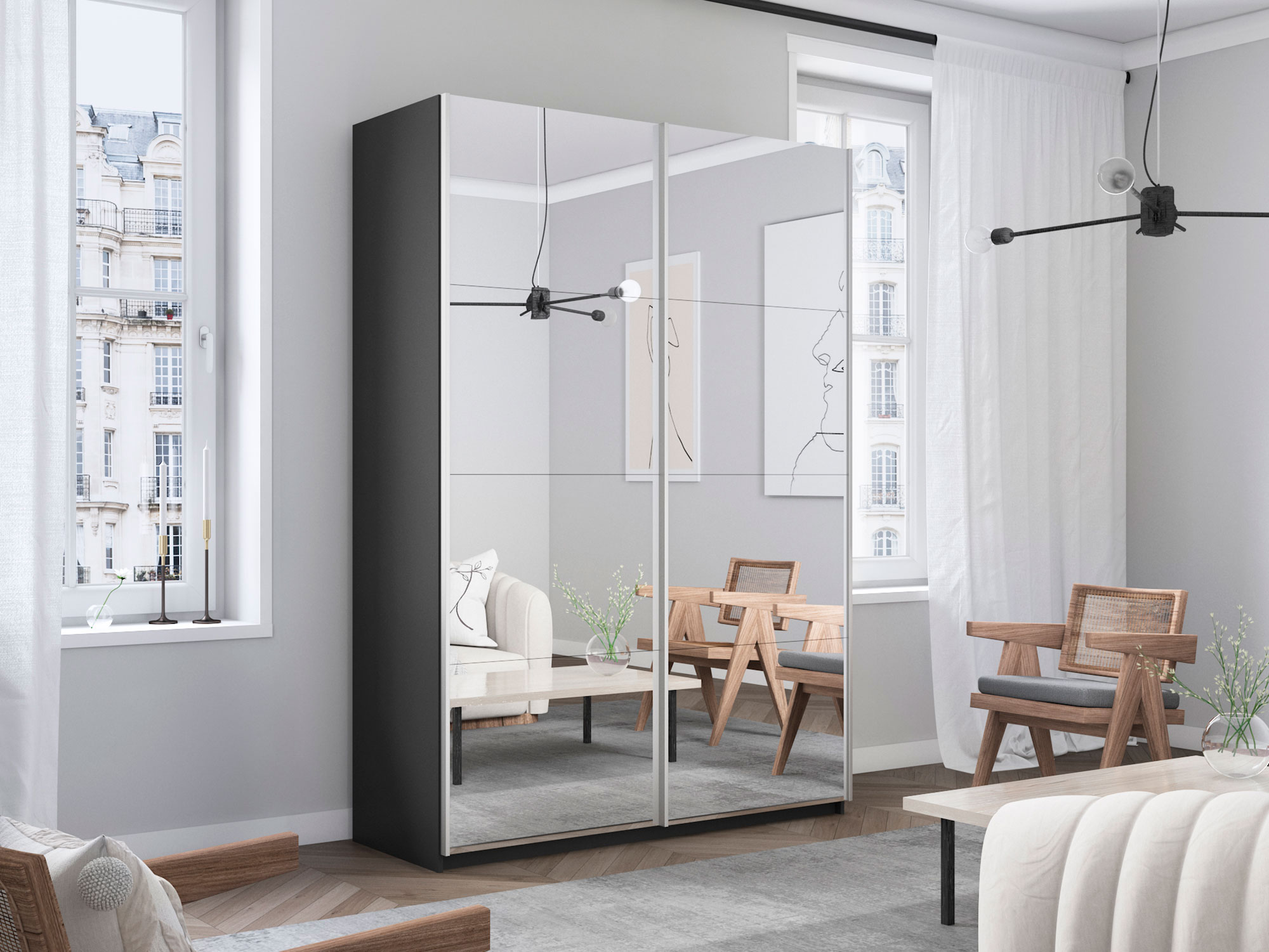- Шкаф-купе Прайм 2-х дверный 1400 два зеркала Серый Диамант