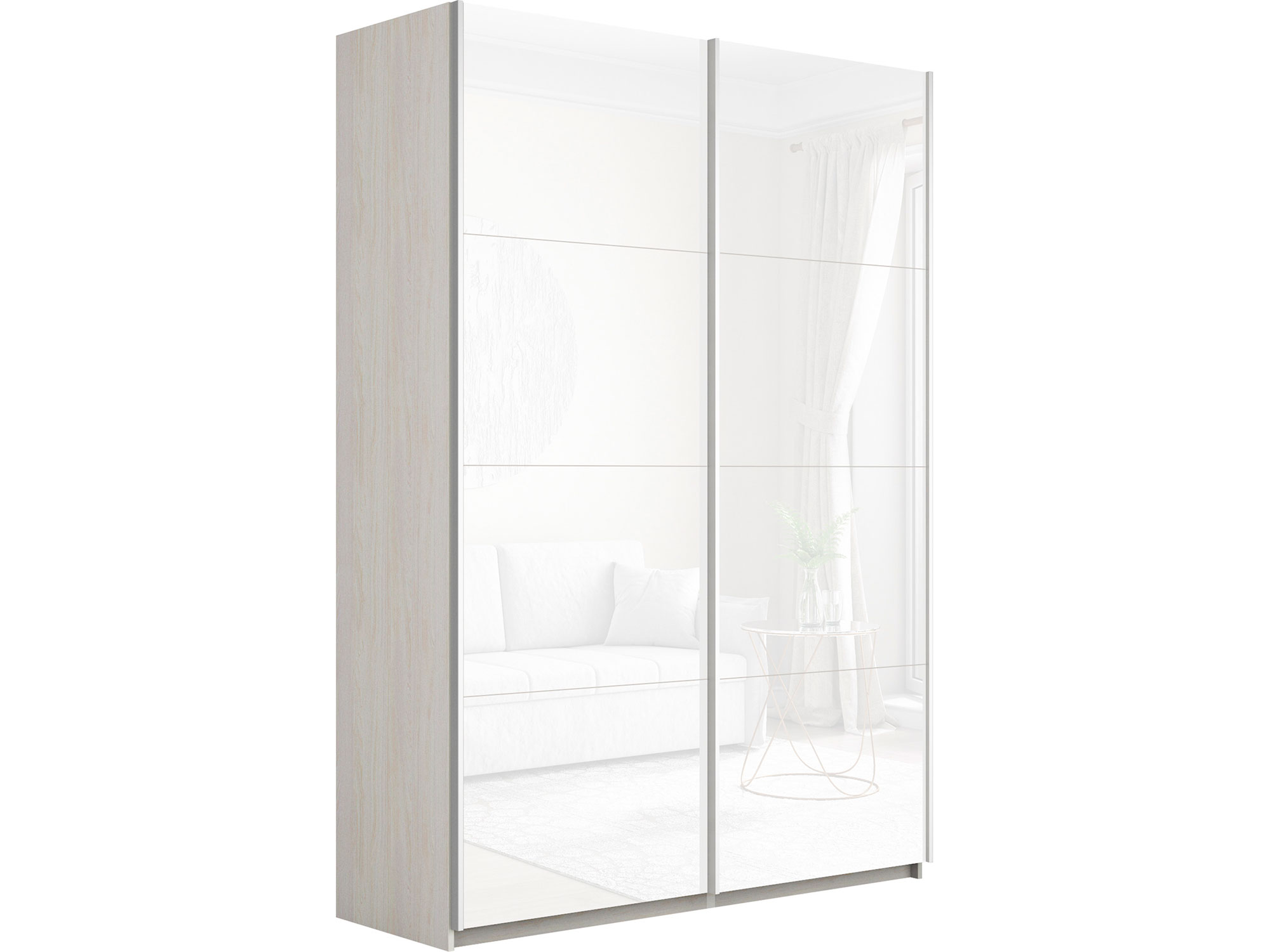 Шкаф-купе Прайм 2-х дверный 1600 Стекло Белое Ясень Анкор Светлый