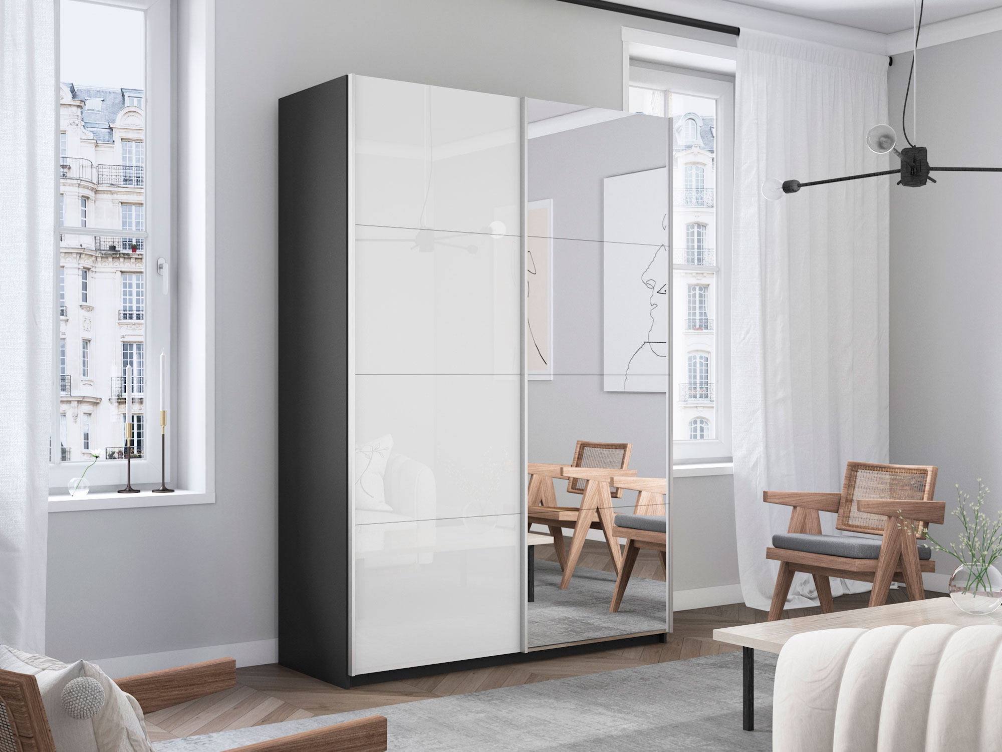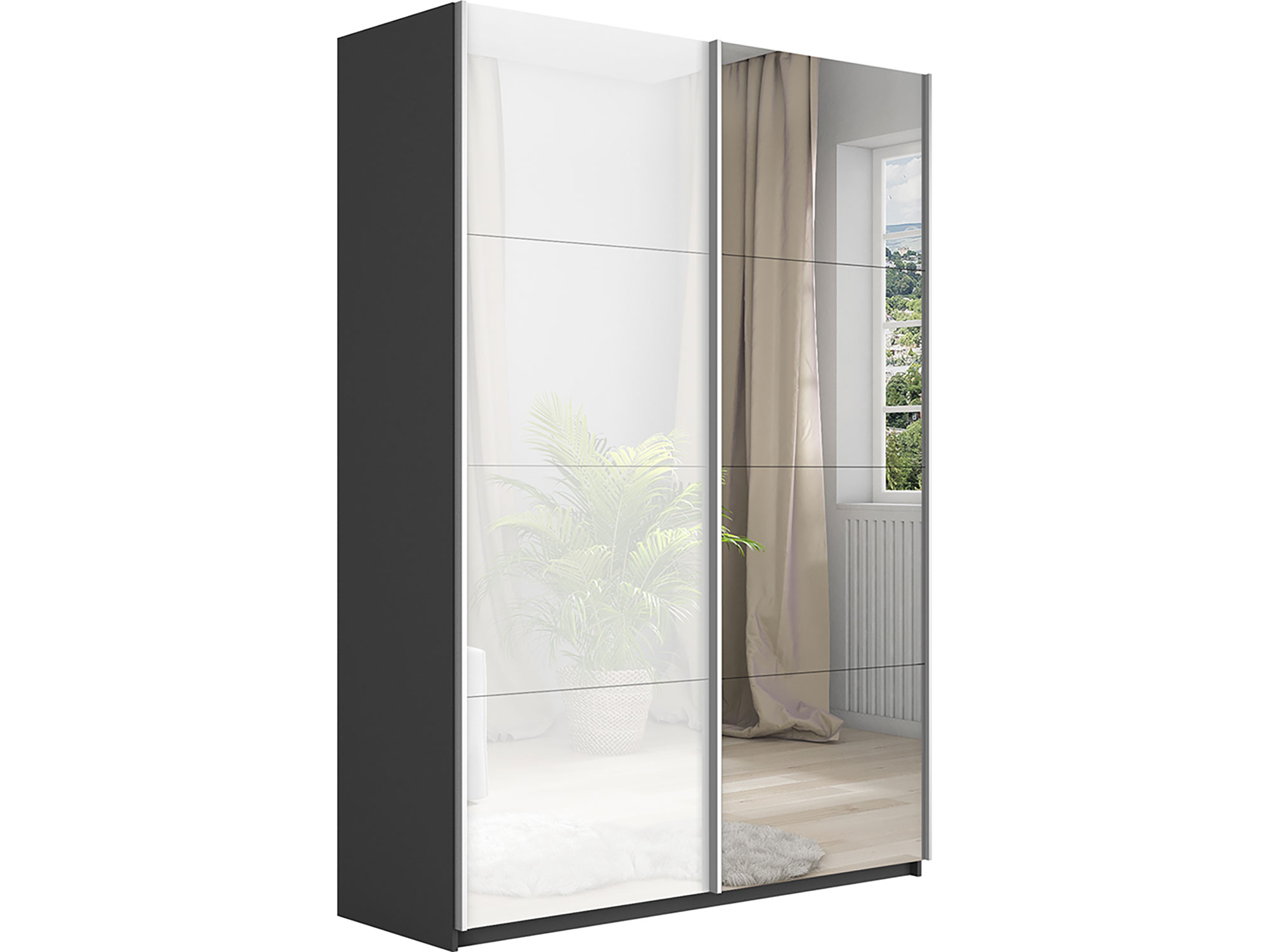 Шкаф-купе Прайм 2-х дверный 1600 Зеркало/Стекло Белое Серый Диамант