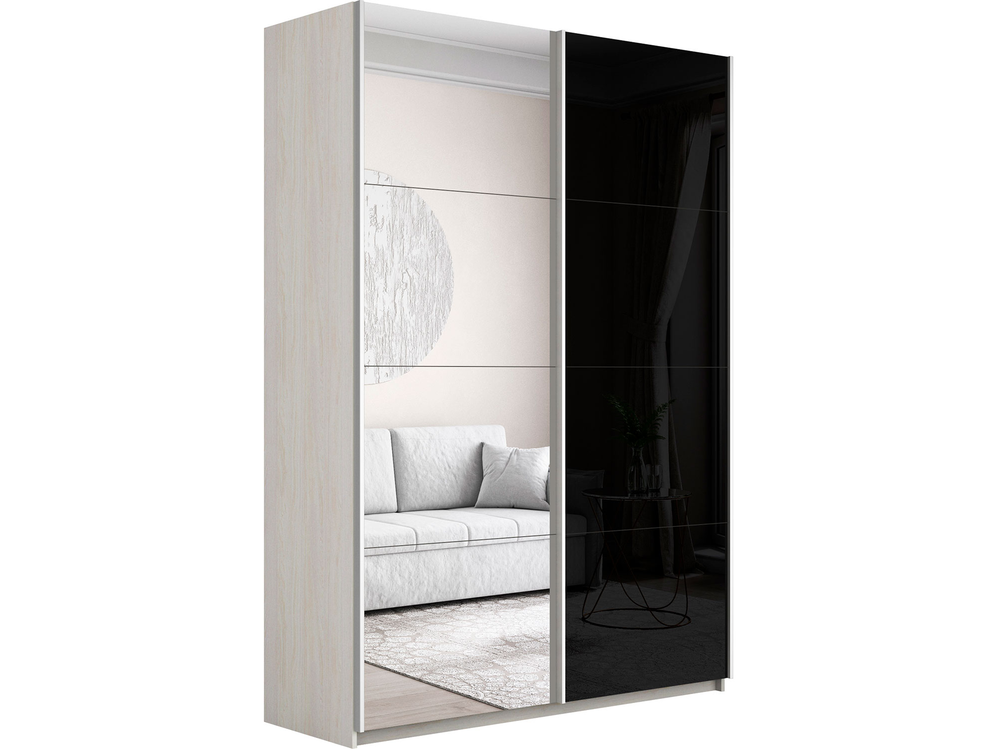 Шкаф-купе Прайм 2-х дверный 1600 Зеркало/Стекло Черное Ясень Анкор Светлый
