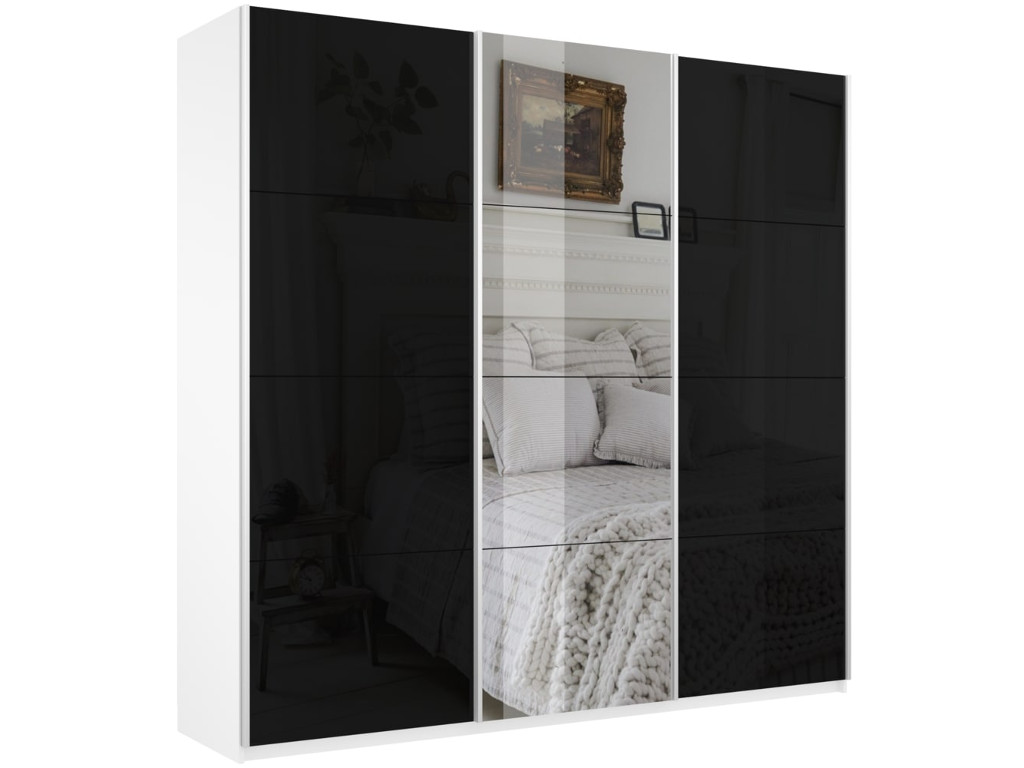 - Шкаф-купе Прайм 3-х дверный 1800 два Стекла Черные/Зеркало Белый Снег