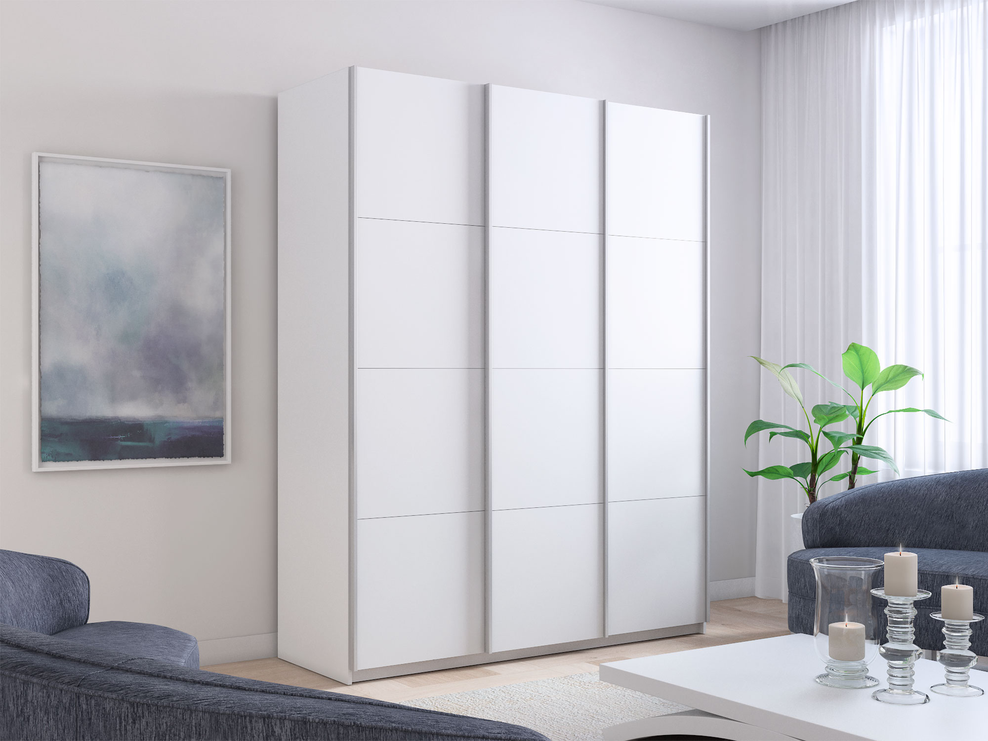 - Шкаф-купе Прайм 3-х дверный 1800 три ДСП Белый Снег