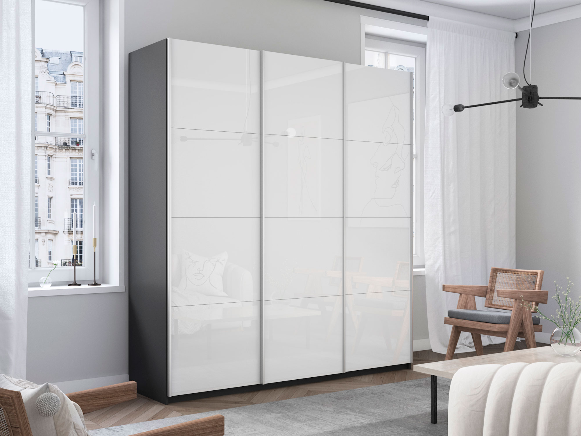 Шкаф-купе Прайм 3-х дверный 1800 три стекла белые Серый Диамант