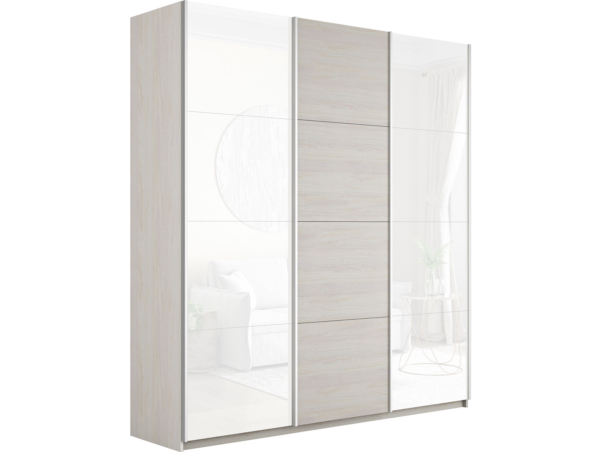 Шкаф-купе Прайм 3-х дверный 2100 два Стекла Белые/ДСП Ясень Анкор Светлый