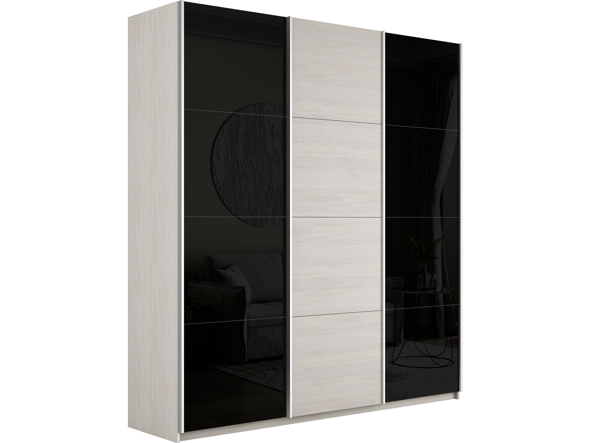 Шкаф-купе Прайм 3-х дверный 2100 два Стекла Черные/ДСП Ясень Анкор Светлый