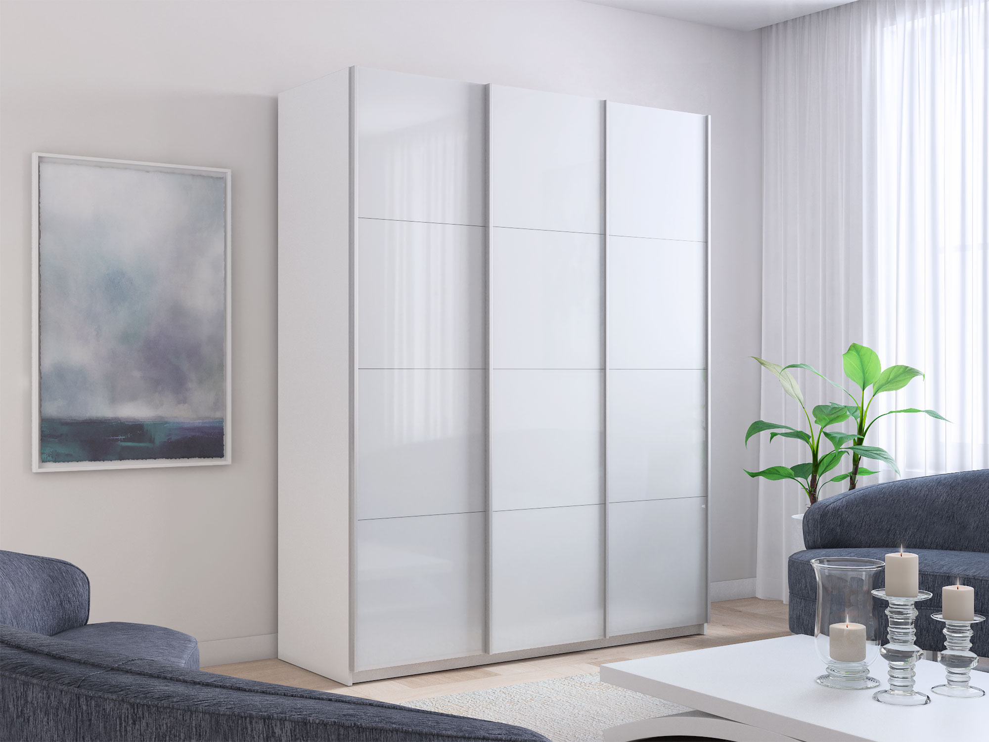 - Шкаф-купе Прайм 3-х дверный 2100 три стекла белые Белый Снег