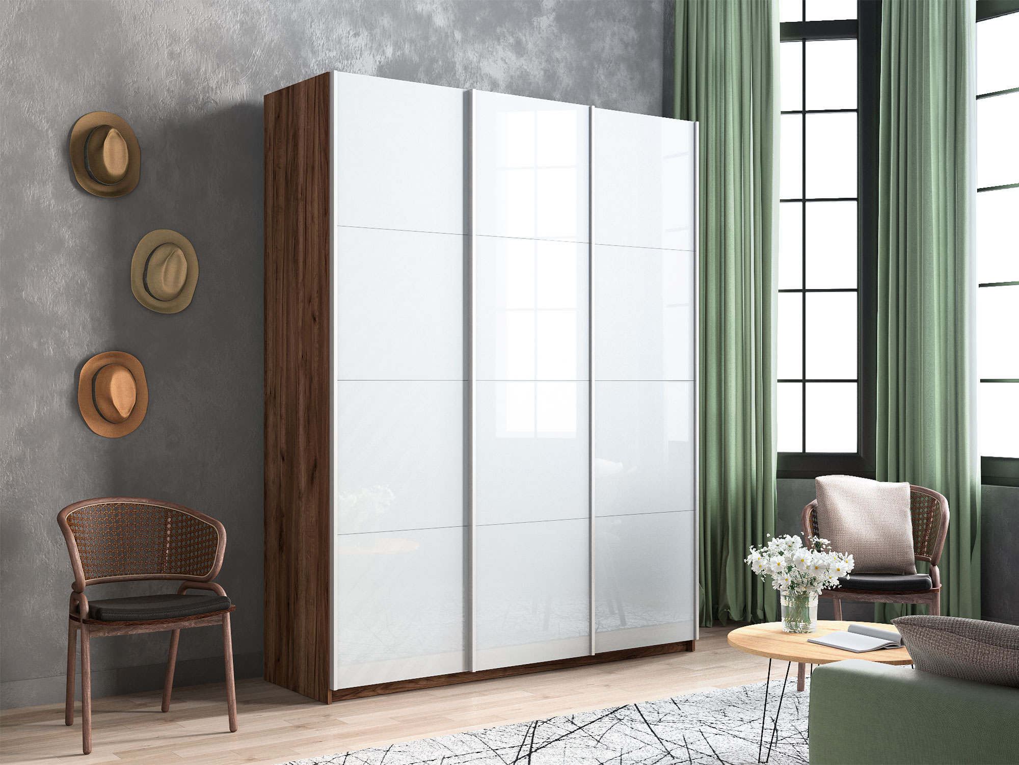 - Шкаф-купе Прайм 3-х дверный 2100 три стекла белые Крафт табачный