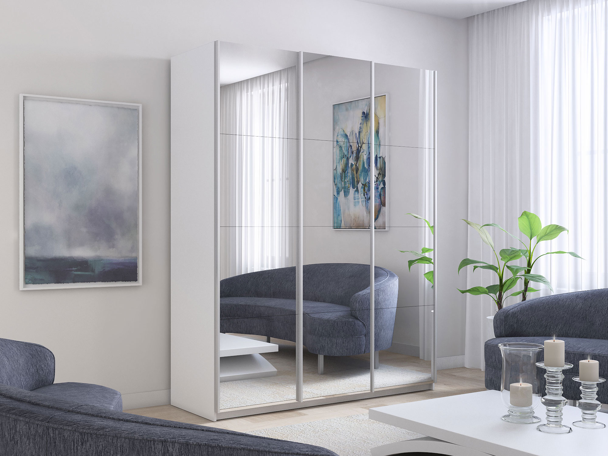 Шкаф-купе Прайм 3-х дверный 2100 три зеркала Белый Снег