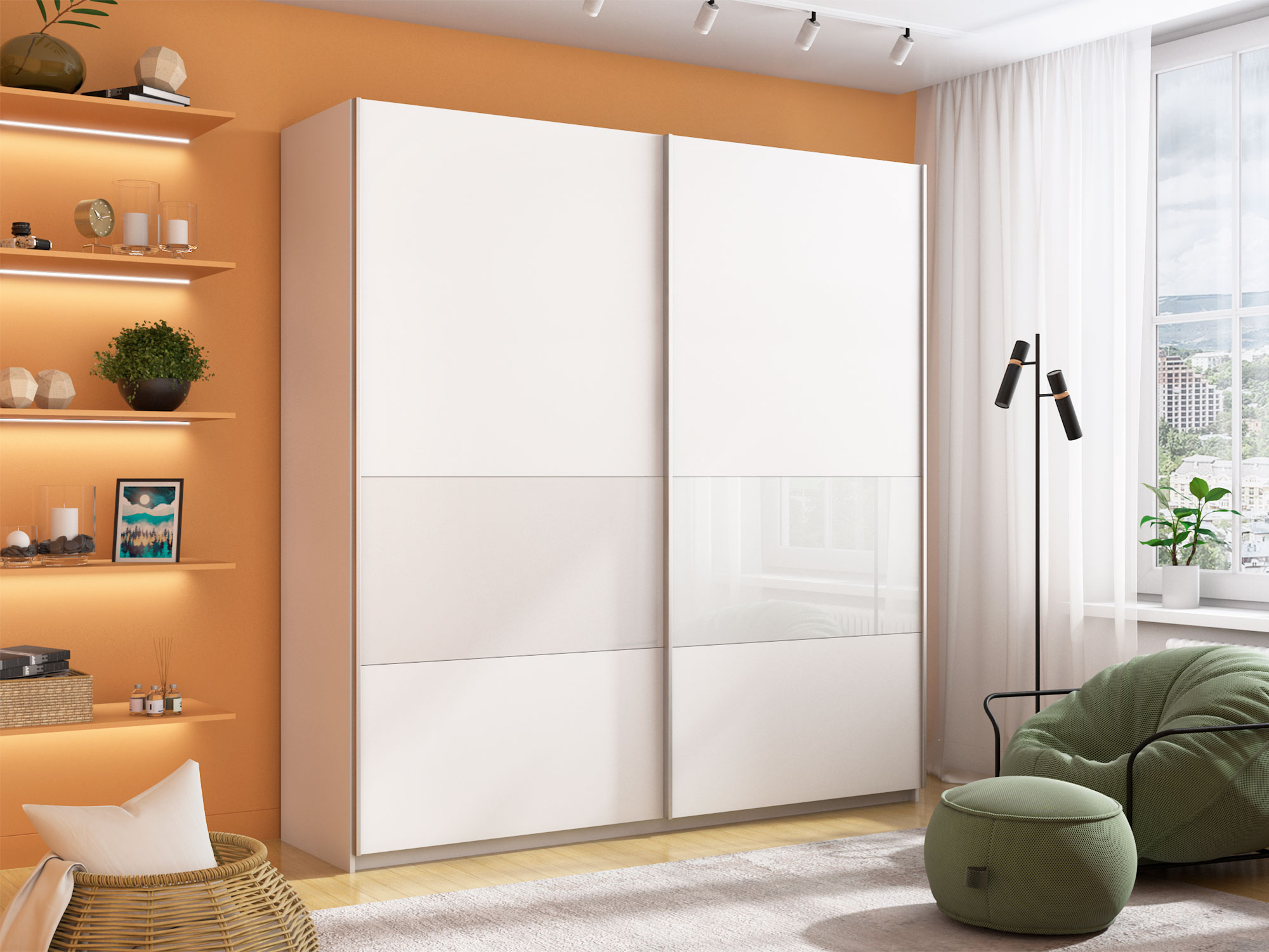 - Шкаф-купе Прайм Широкий 2-х дверный ДСП/вставки Стекло Белое Белый Снег