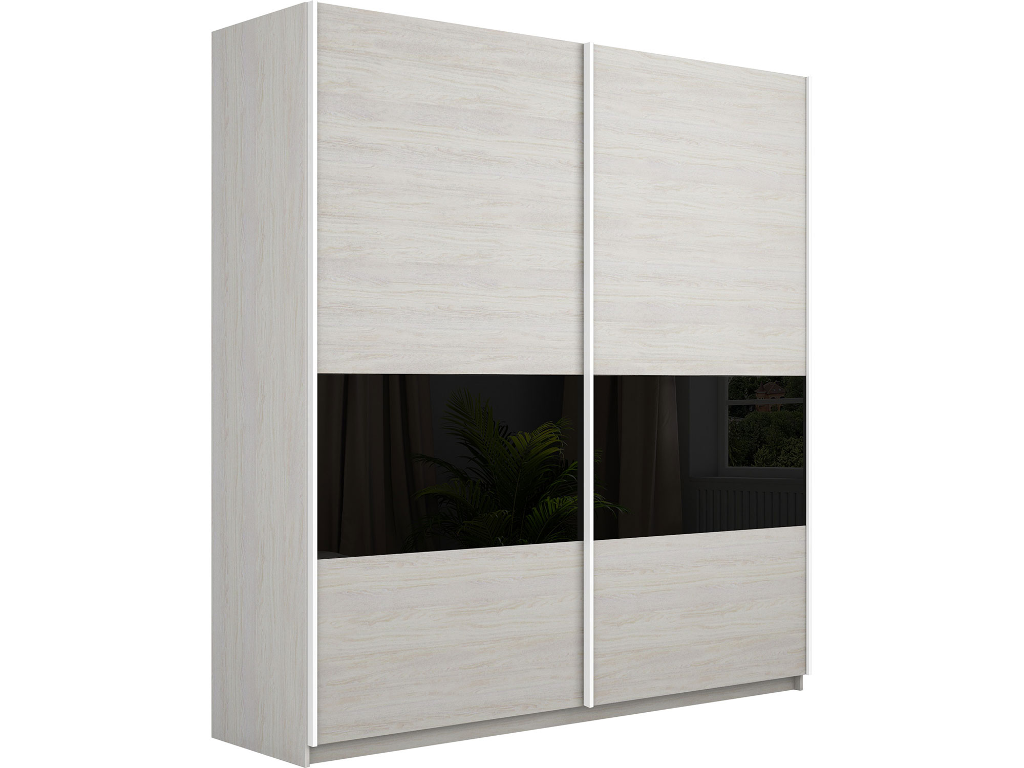 - Шкаф-купе Прайм Широкий 2-х дверный ДСП/вставки Стекло Черное Ясень Анкор Светлый