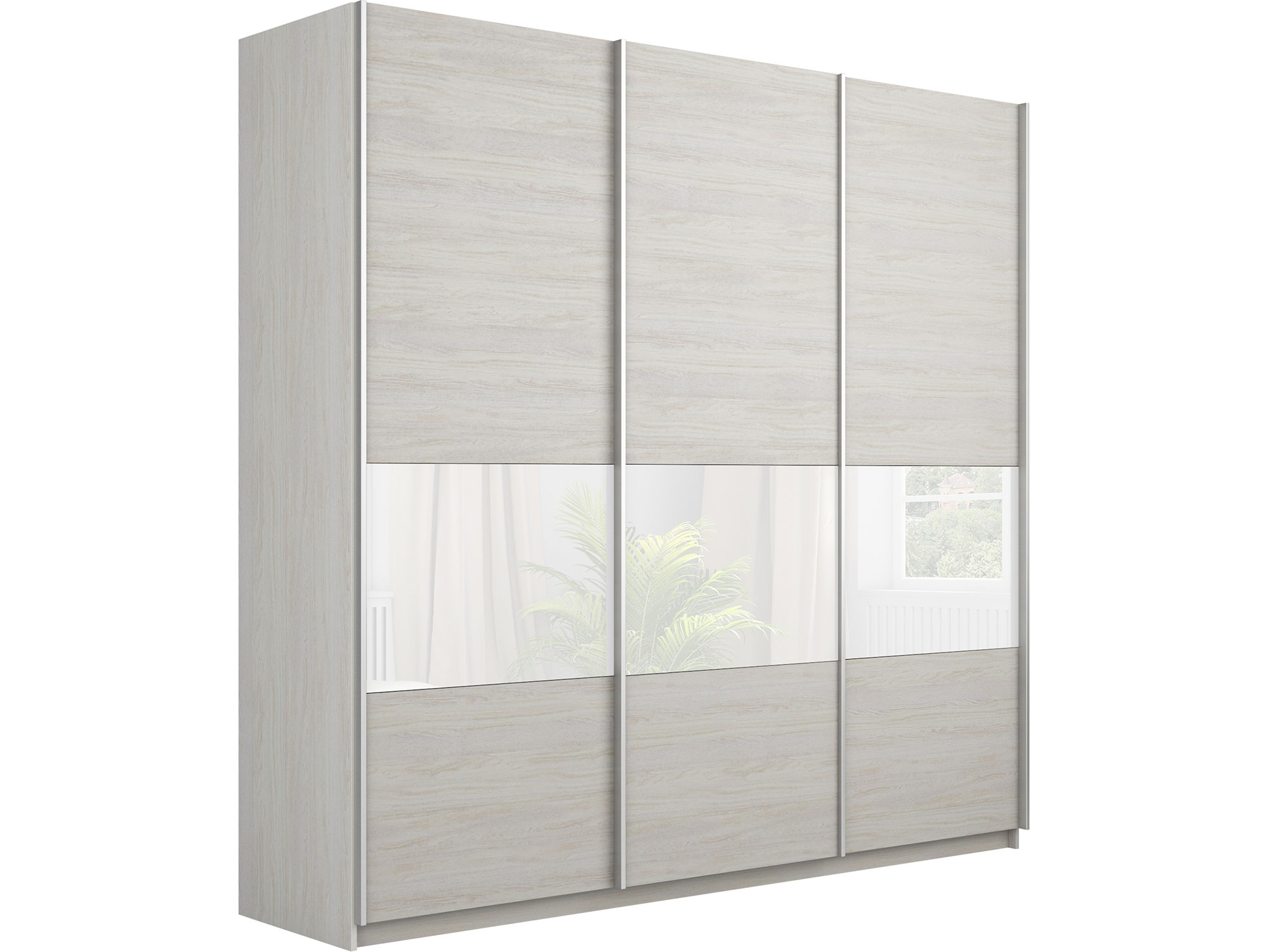 - Шкаф-купе Прайм Широкий 3-х дверный ДСП/вставки Стекло Белое Ясень Анкор Светлый