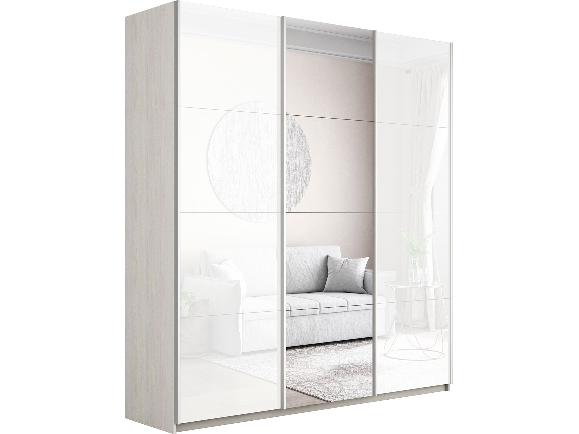 Шкаф-купе Прайм Широкий 3-х дверный два белых стекла/зеркало Ясень Анкор Светлый