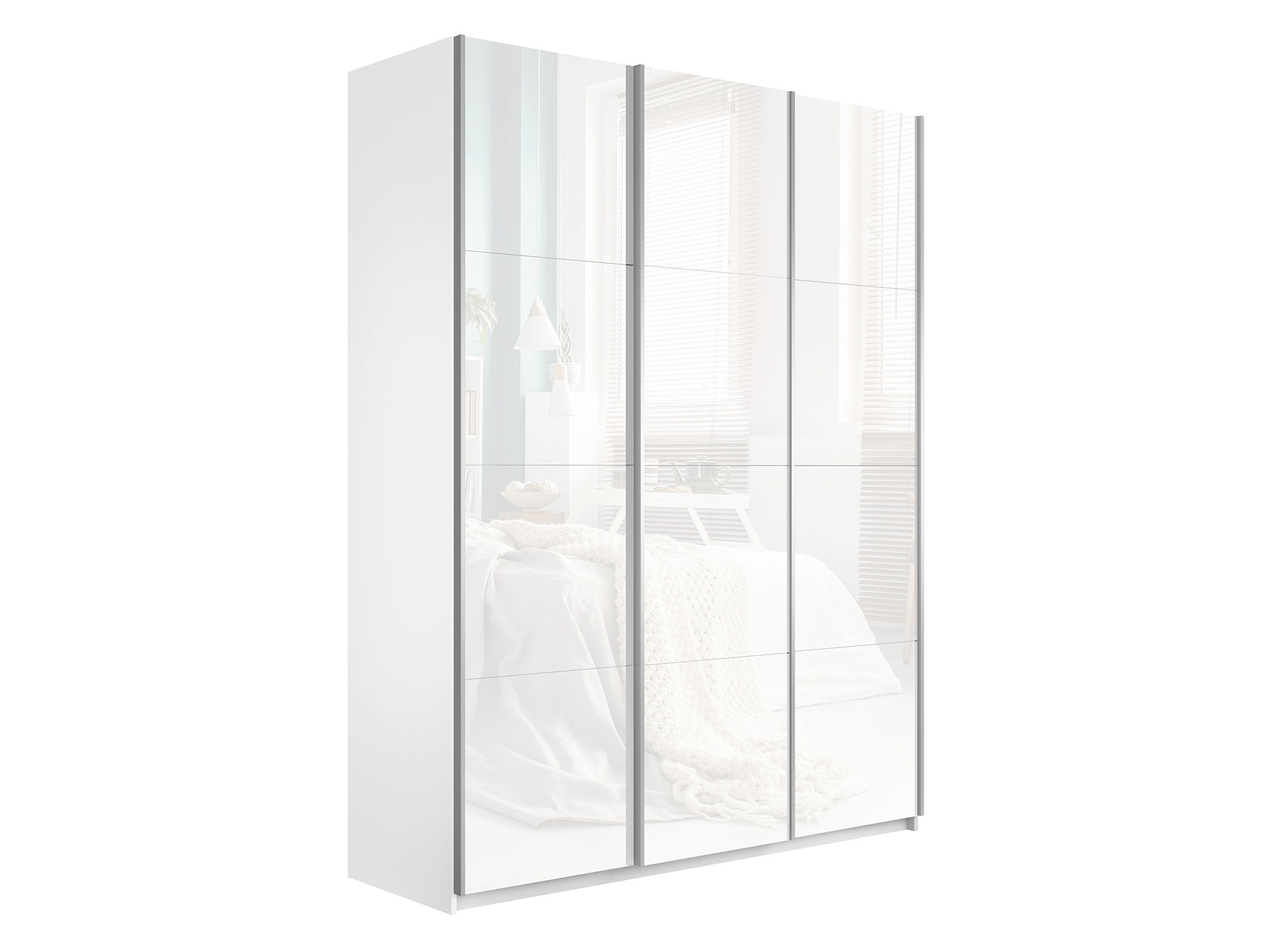 - Шкаф-купе Прайм Широкий 3-х дверный три белых стекла Белый Снег