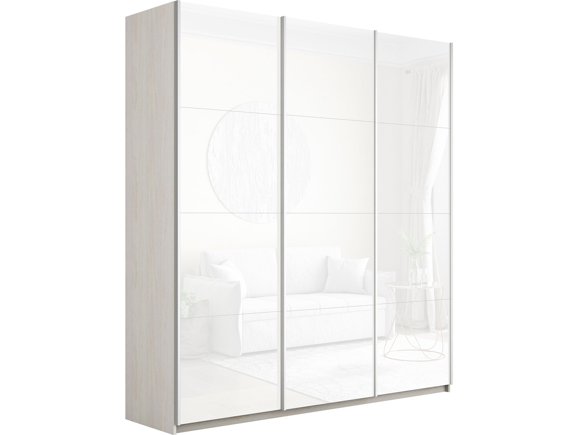 - Шкаф-купе Прайм Широкий 3-х дверный три белых стекла Ясень Анкор Светлый