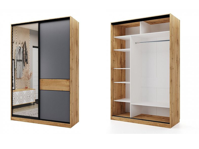- Шкаф-купе SLIM 2-хдверный BS15-6.ZD с зеркалом дуб вотан-черный муар