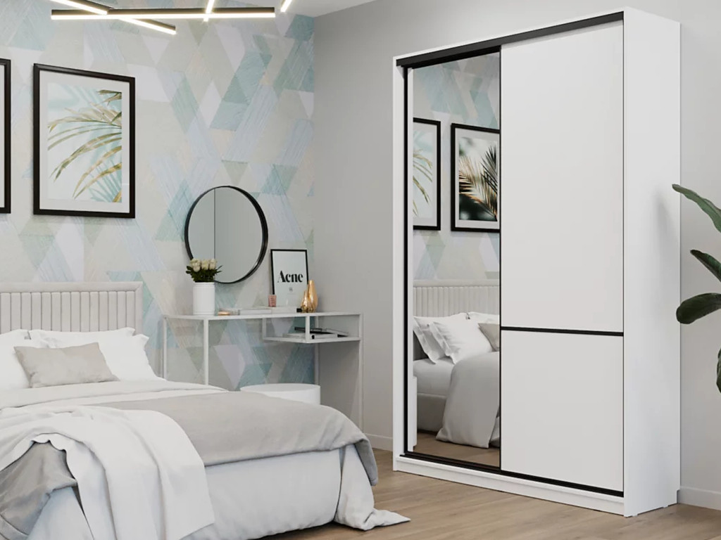 Шкаф-купе СТМ Line 150х45 с зеркалом Белый