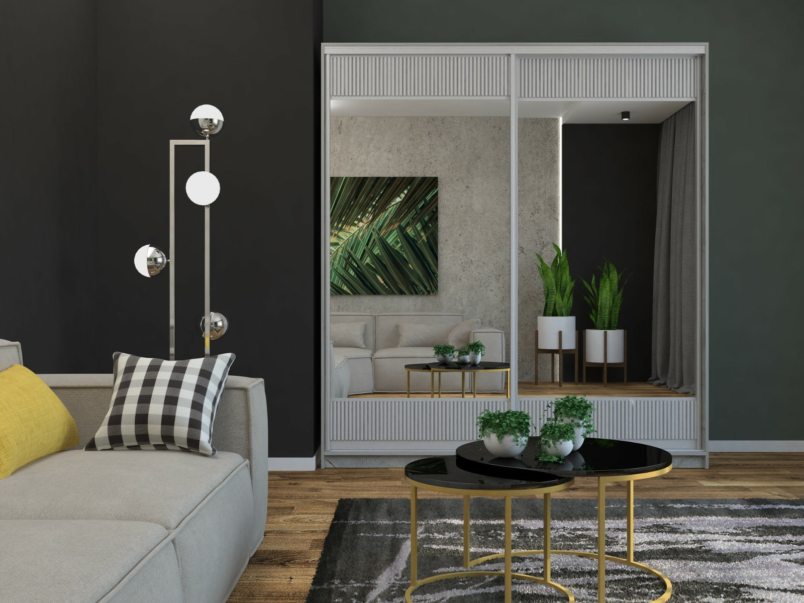 - Фасад две двери комбинированные рельефный МДФ/зеркало