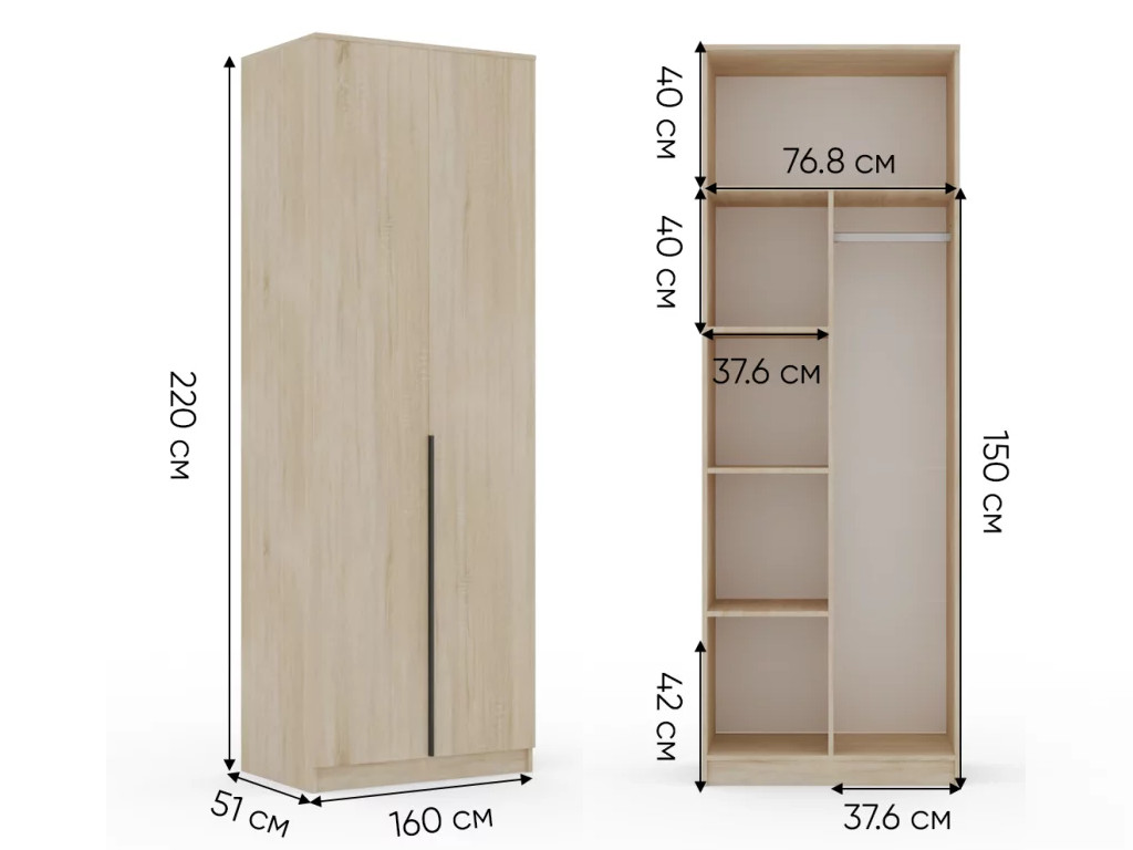 - Шкаф Монблан New распашной 800 2-х дверный Дуб сонома