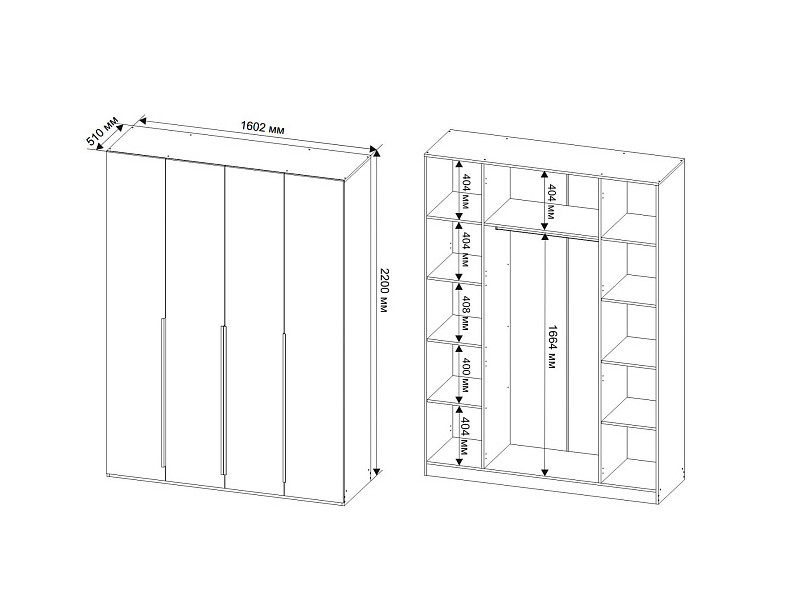 Размеры В*Ш*Г, мм: 2200х1602х510