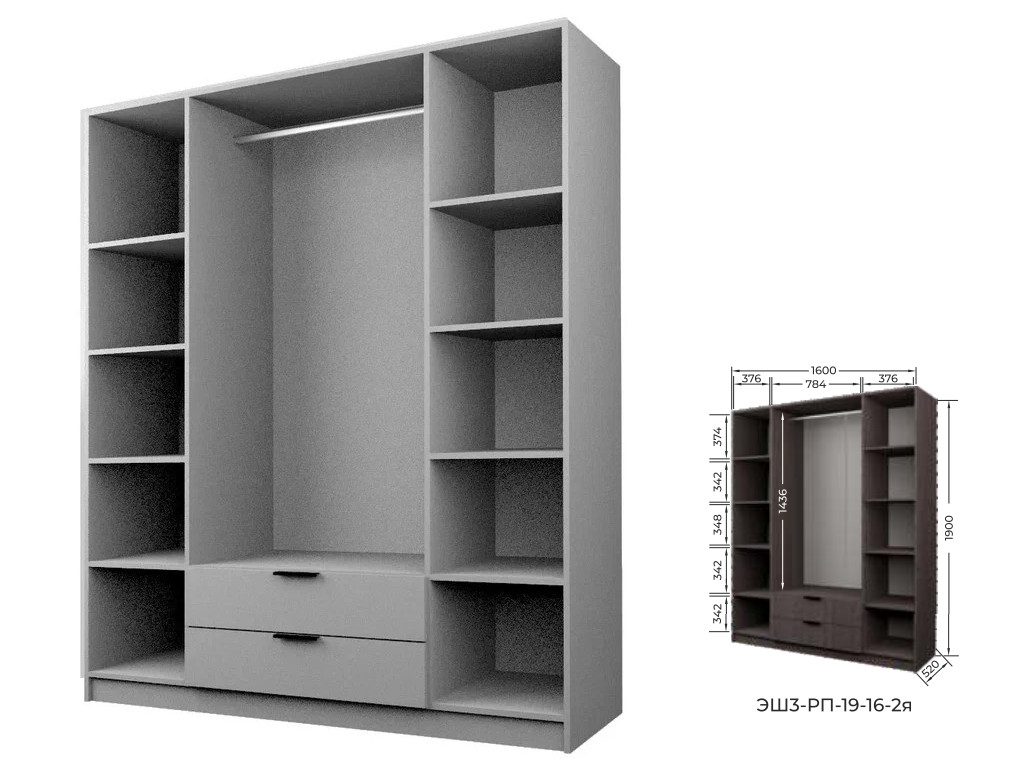 Шкаф с 2 ящиками Экон ЭШ3-РП-19-16-2я два зеркала