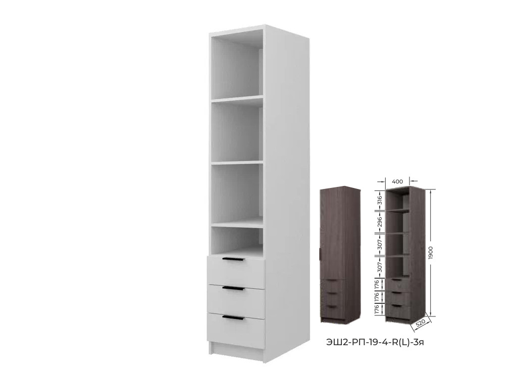 Шкаф с 3 ящиками с полками Экон ЭШ2-РП-19-4-R-3я