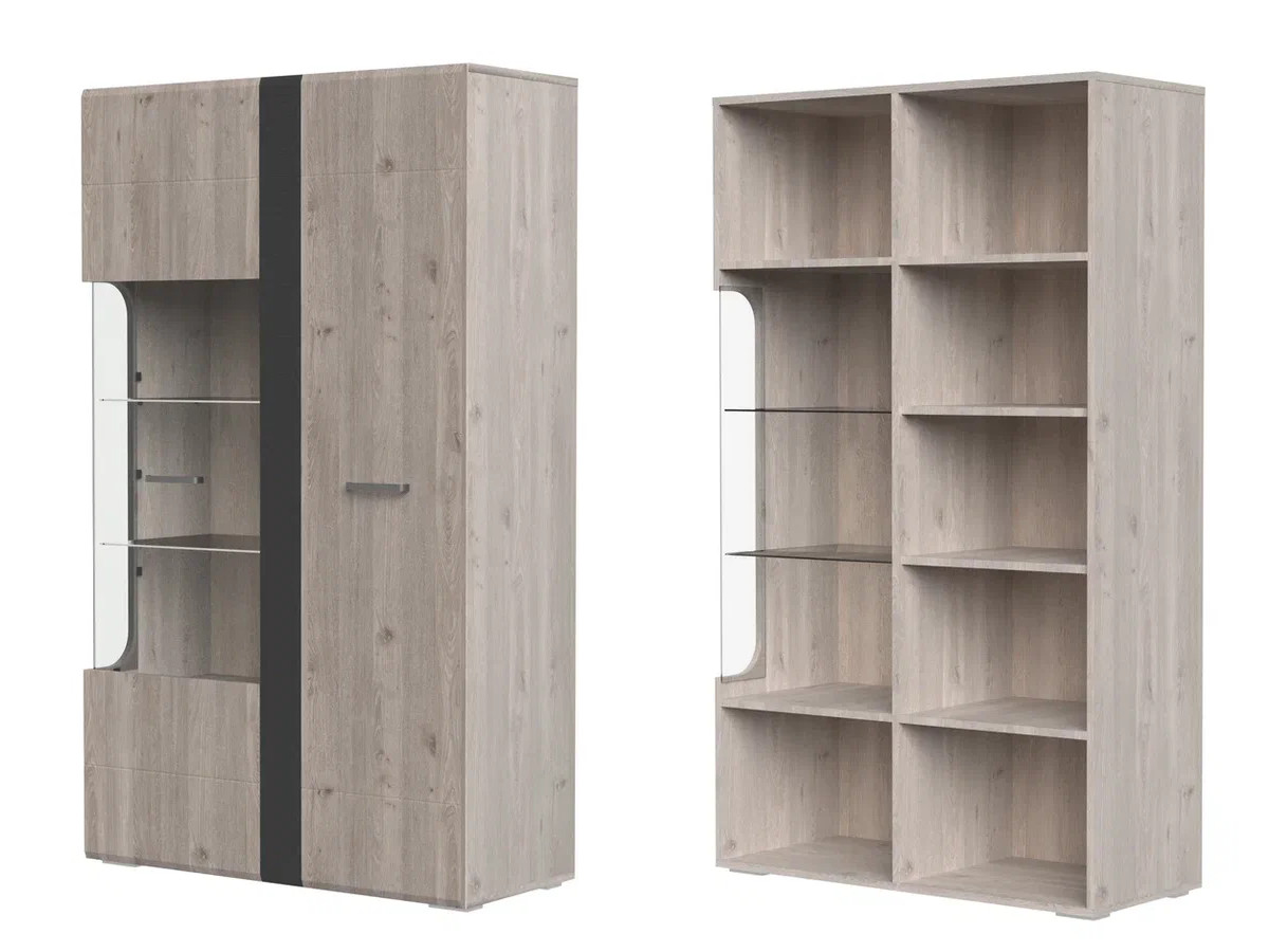 - Шкаф с витриной 2 двери Бриз Дуб Нельсон