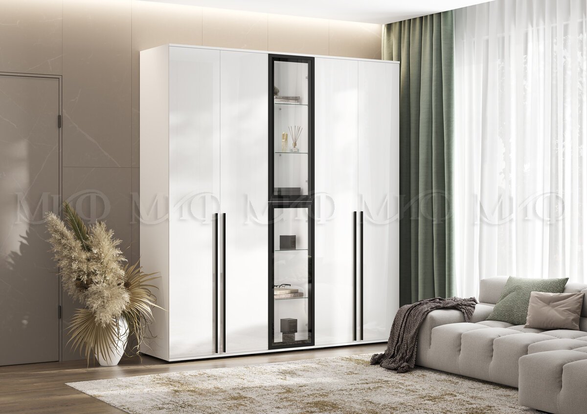 Шкаф с витриной Норд Белый глянец