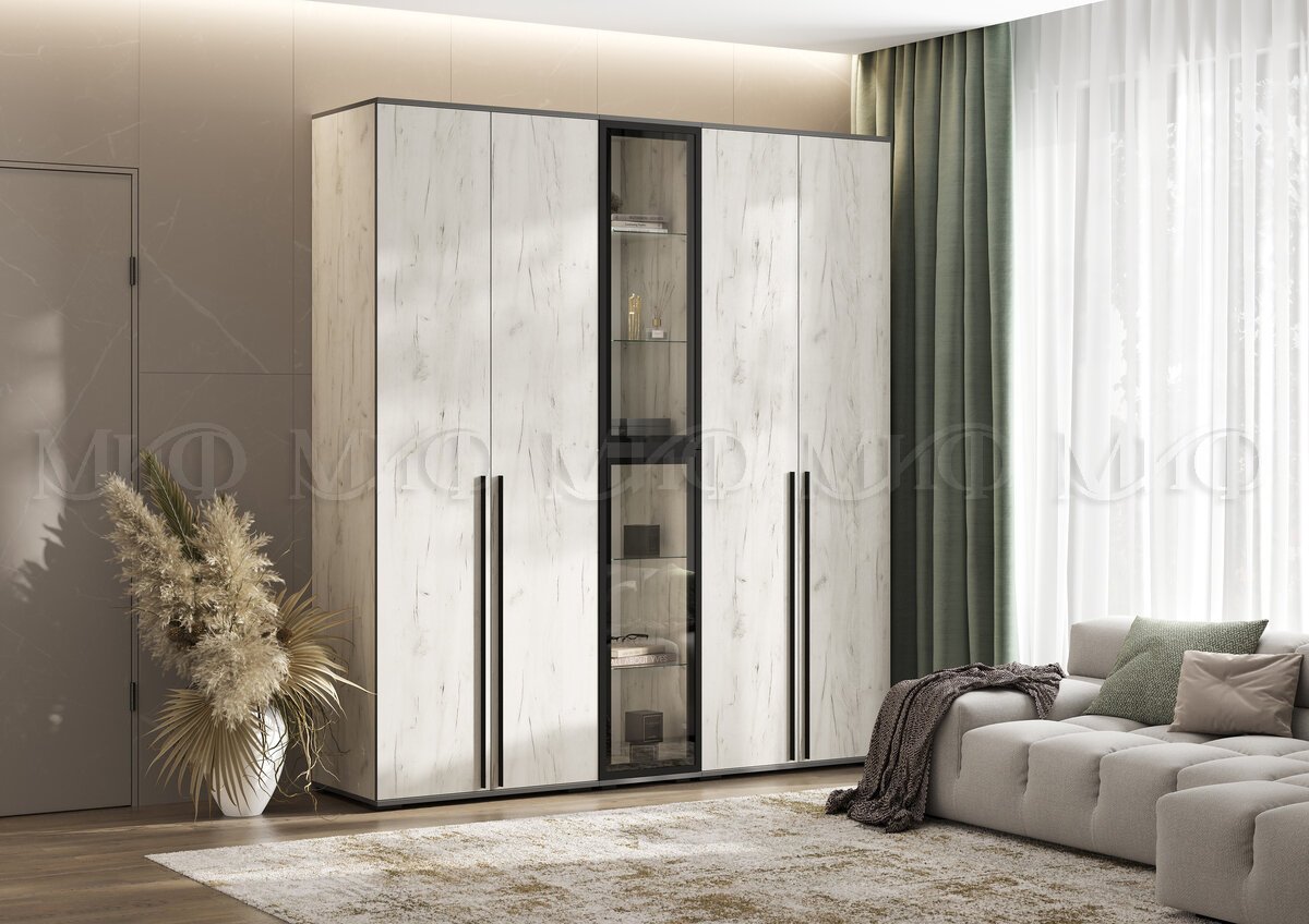 - Шкаф с витриной Норд Дуб Крафт Белый