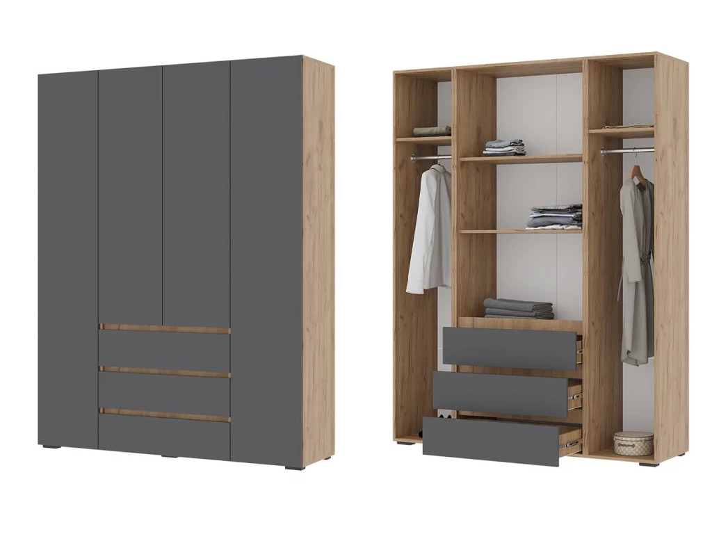 Шкаф с ящиками Хелен 4-х створчатый ШК 05 Дуб крафт золотой-Серый графит