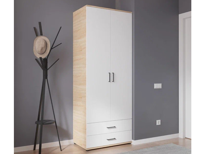 Шкаф с ящиками, штангой и полками арт. 556 дуб сонома/белый